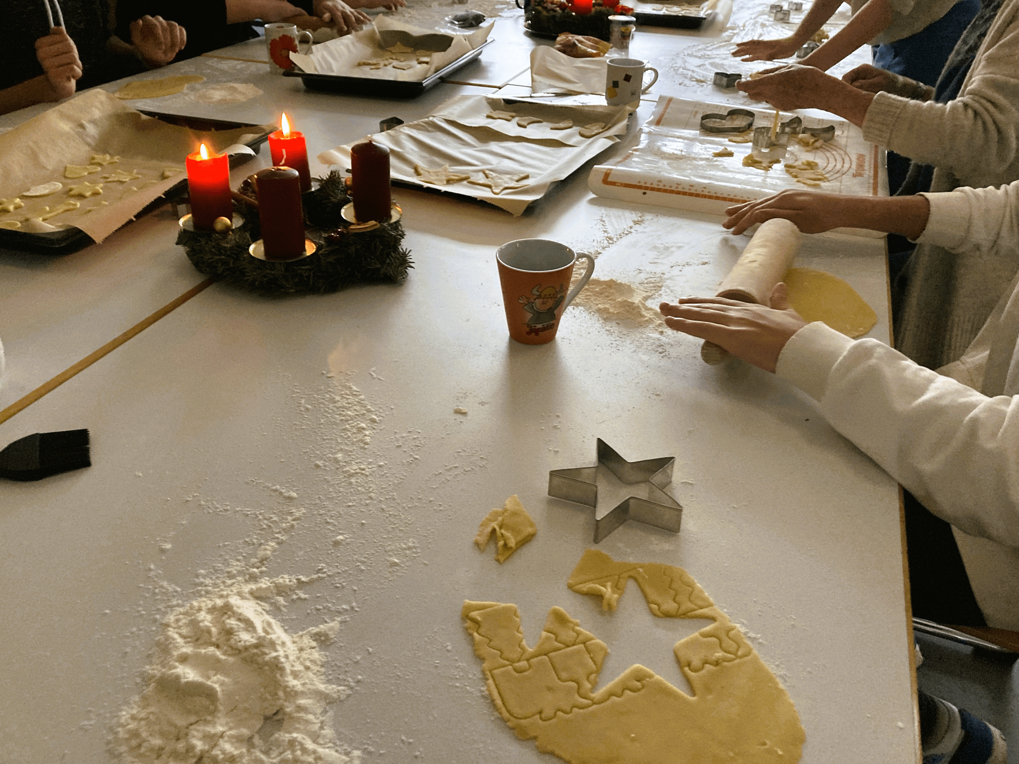 Gemeinsam haben 20 Schülerinnen und Schüler aus der ukrainischen Brückenklasse sowie aus unterschiedlichen Jahrgangsstufen mehr als 300 Plätzchen gebacken.