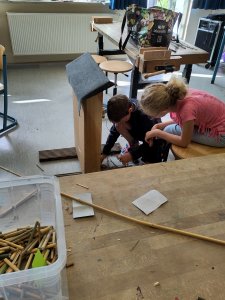 Am Freitag halfen die Hilde-Schülerinnen und -Schüler dann noch beim Grundschulbasar, der die Woche abschloss. Leider musste das geplanten Sommerfest aufgrund der Unwetterwarnung abgesagt werden, so dass die entstandenen Produkte erst in der Woche drauf von den Grundschülerinnen und Grundschülern verkauft werden konnten.