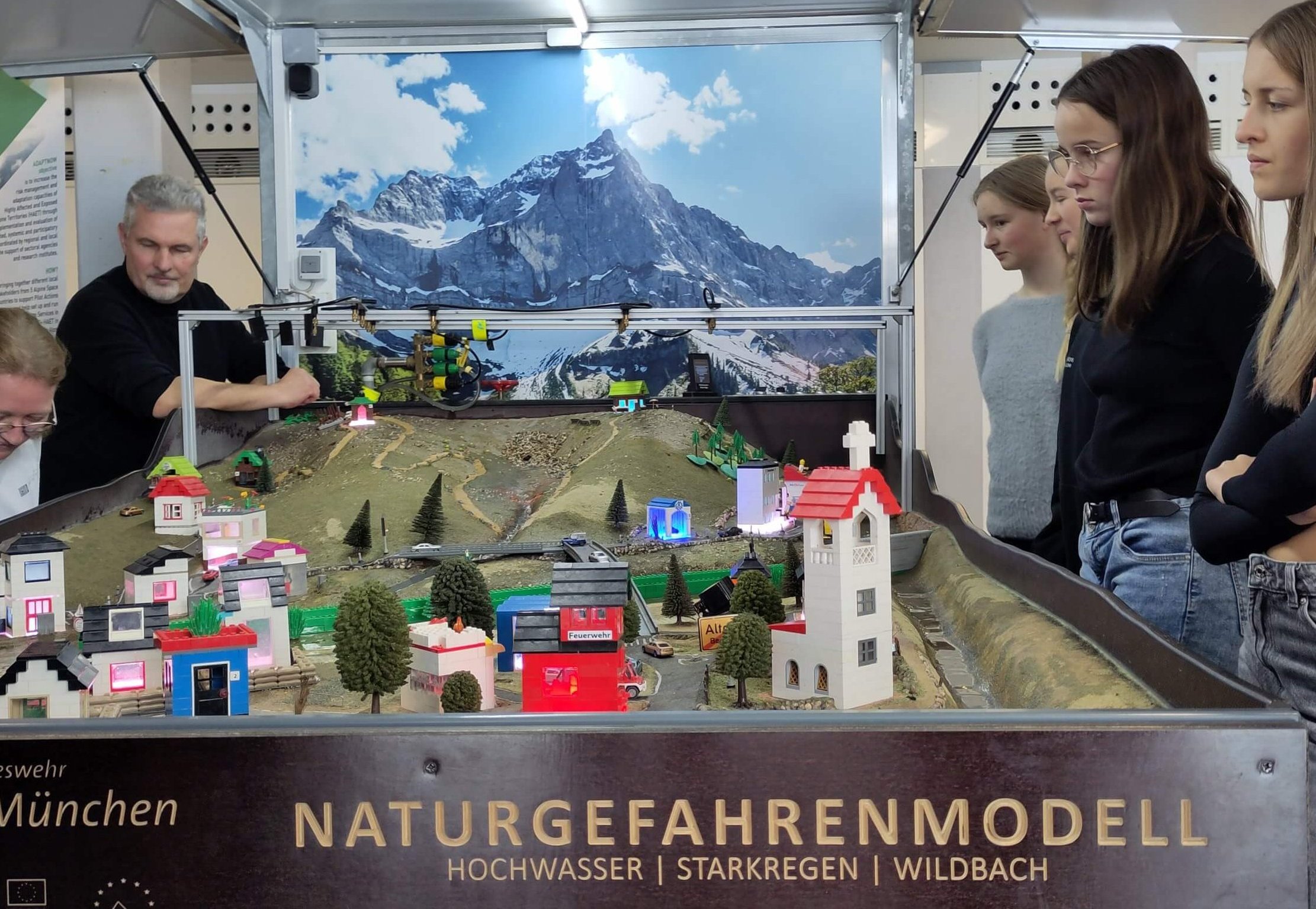 Das Modell überzeugte mit seiner Anschaulichkeit und den praktischen Möglichkeiten, Extremwetterereignisse „nachzuspielen“ und in ihren Auswirkungen direkt nachzuverfolgen. So liefen schnell die ersten Keller voll, es gingen Muren ab und wichtige Infrastruktur brach zusammen.