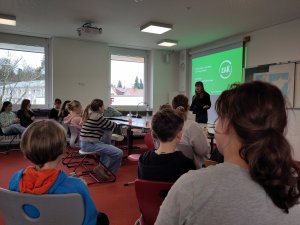 In informativen Workshops, die von Annemarie und Steffen vom ZAK (dem Zweckverband für Abfallwirtschaft Kempten) unterhaltsam durchgeführt wurden, setzten sich die einen so mit Fast Fashion und deren Vermeidung sowie Alternativen auseinander, die anderen lernten die „Abfallhierarchie“, den Unterschied zwischen linearer sowie der Kreislaufwirtschaft und als Highlight mittels VR-Brille eine Müllsortieranlage der gelben Säcke in München kennen.