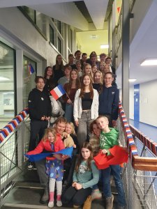 Ein ganz besonderes Flair ergab sich heuer aus dem gleichzeitigen Besuch einer Gruppe von Schülerinnen und Schülern aus unserer Partnerschule in Bollène (Provence), so dass der deutsch-französische Tag ganz authentisch gemeinsam im Rahmen des Schüleraustausches gefeiert werden konnte.