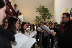 Vom 10.2. bis zum 12.2.25 fanden die alljährlichen Probentage der Wahlfächer rund um das Thema Musik statt. Der große Chor, die Big Band, das Wahlfach Gitarre, das Mittel- und Oberstufenorchester und auch das Unterstufenorchester bereiteten sich in Memhölz, Schönstatt auf’m Berg, intensiv auf das anstehende Frühjahrskonzert vor. Neben dem fleißigen Singen und Musizieren, durften Freizeit und Spaß natürlich nicht zu kurz kommen. So gab es zum Beispiel Yoga am Morgen, Tischtennis und Kickerduelle und einen vom Thema Casino angehauchten Spieleabend in feinen Klamotten. Wer sich selbst davon überzeugen will, ob sich die harte Arbeit gelohnt hat, ist daher herzlich eingeladen, das Frühjahrskonzert im Mai zu besuchen. [Pia Treffler, Klasse 10e]