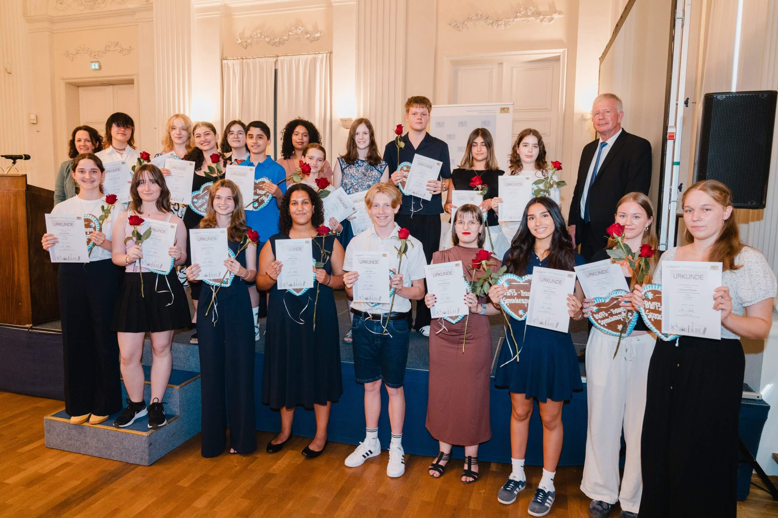 „Beachtlicher Erfolg für bayerische Schülerinnen und Schüler beim Bundeswettbewerb Fremdsprachen: Sprachen – der Türöffner zur Welt“, so der Titel der PRESSEMITTEILUNG 083/2025 des Bayerischen Staatsministeriums für Unterricht und Kultus bezüglich der LANDESPREISVERLEIHUNG im ehrwürdigen Max-Joseph-Saal der Münchner Residenz Ende letzten Schuljahres.